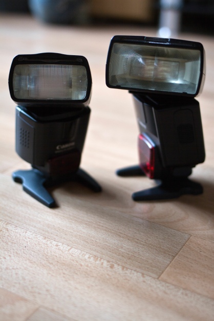 Um das harte Licht meiner Systemblitze zu diffusieren, setze ich bei Portraits gern das Flash2Softbox-System ein, welche mir auf den ziemlich stabilen Walimex Pro 806-Stativen mit Manfrotto-Blitzneigern eine sehr flexible Lösung bieten. Sicherlich können dabei keine Mannschaften bei Nacht ausgeleuchtet werden, aber das mache ich ja auch nicht wirklich oft :) 2 dieser Systeme sind komplett vorhanden und überzeugen mich bei jedem Einsatz wieder! Die Leistung beider Speedlite 550EX ist nämlich nicht zu verachten, mein 430EXII ist eher für die Ausleuchtung des Hintergrunds gedacht oder wird - dank deutlich stabilerem Fuß und sinnvollem Schnellverschluss - im Alltag eingesetzt. Der interne Blitz einer DSLR, sofern vorhanden, ist eher als Notbehelf gedacht und sollte maximal als Aufheller dienen! Vergleichen kann man das mit einem Systemblitz in keiner Weise!